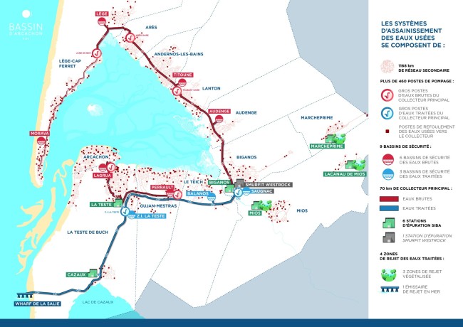 Le SIBA gère et sécurise ces 3 systèmes d’assainissement indépendants, constitués de 5 stations d’épuration, de plus de 1 220 km de réseaux, de 9 bassins de sécurité et de plus de 460 postes de refoulement.